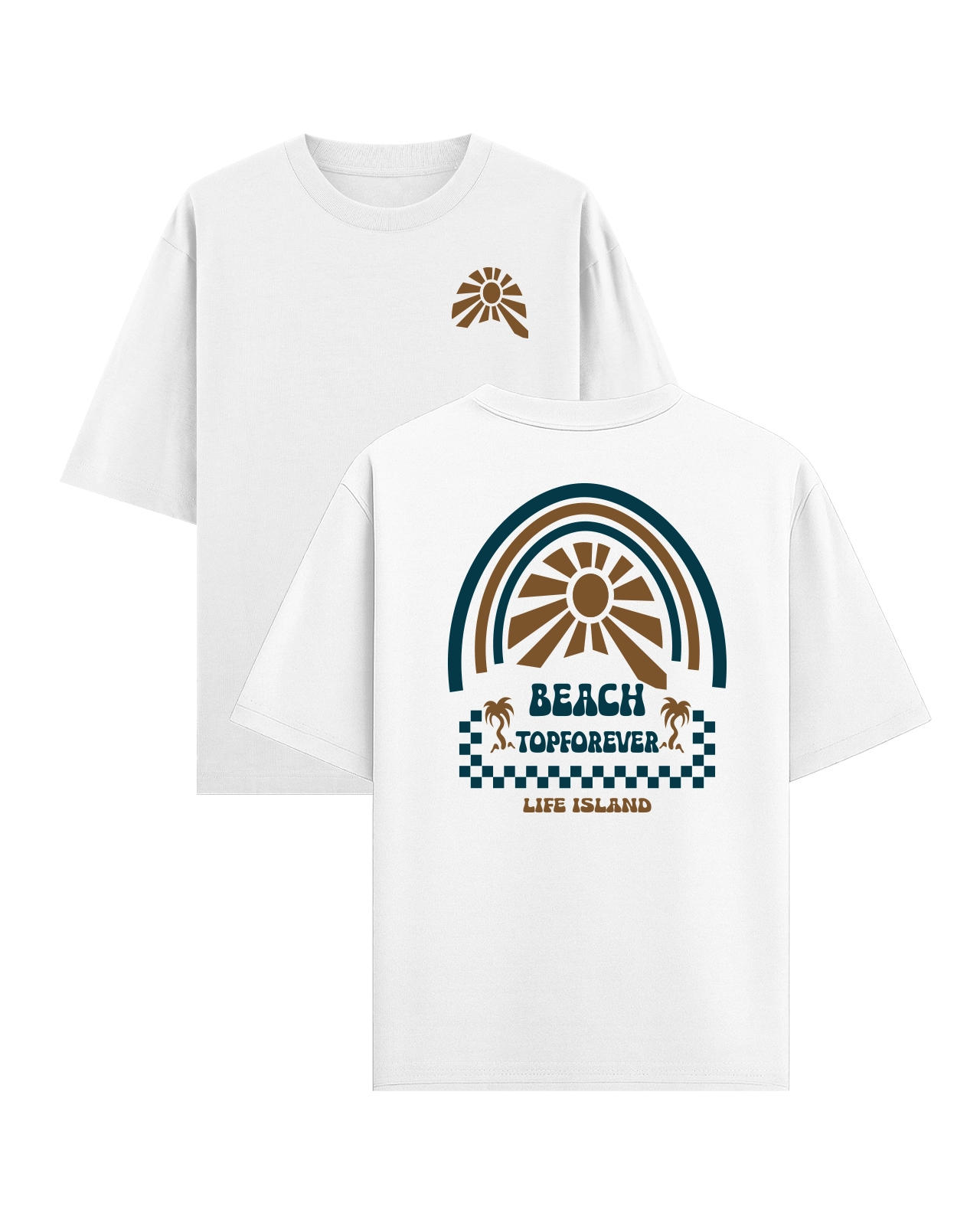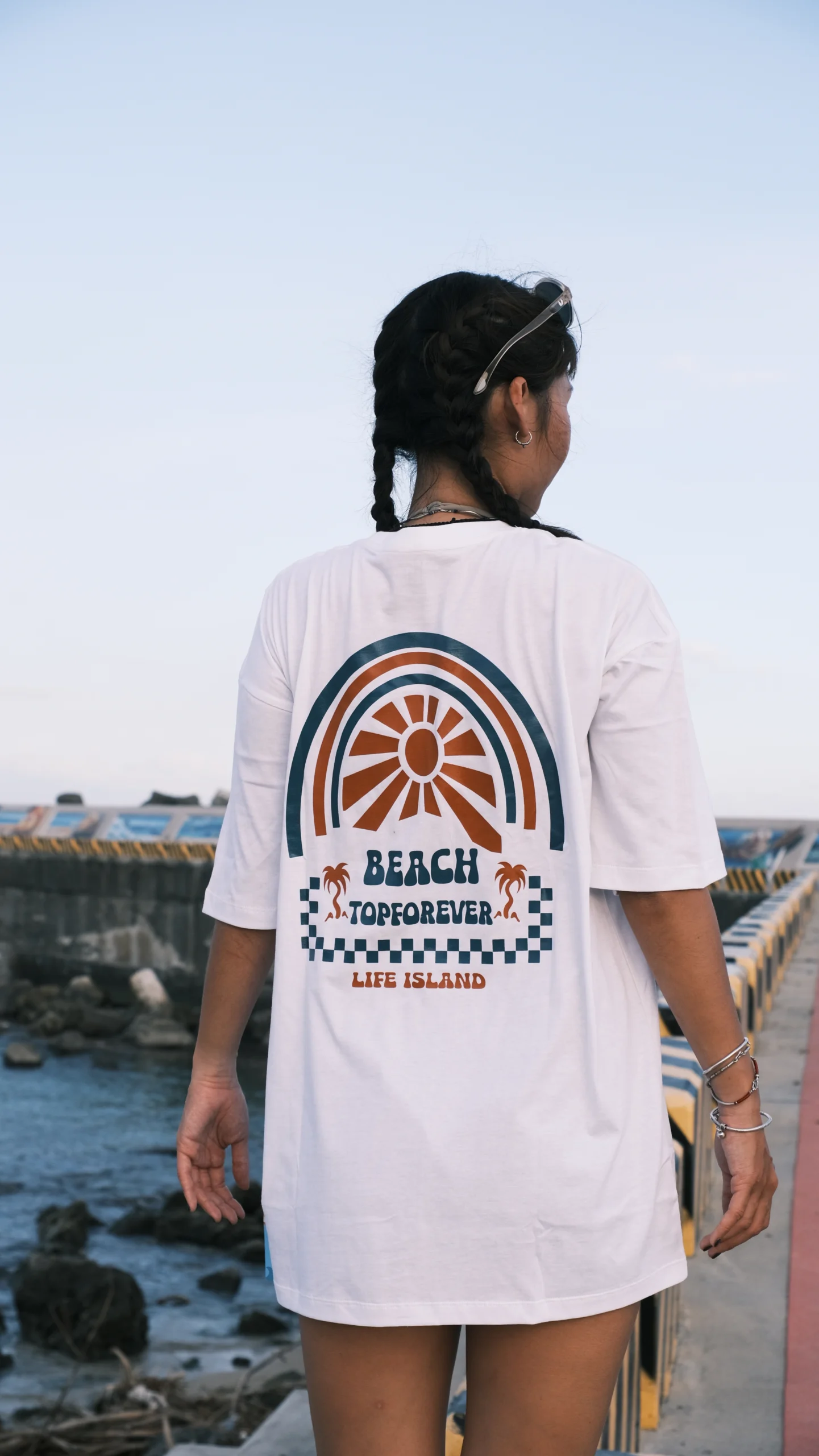 เสื้อยืดโอเวอไซต์ สกรีนลายสายรุ้ง ผ้าคอตตอน สีพื้น